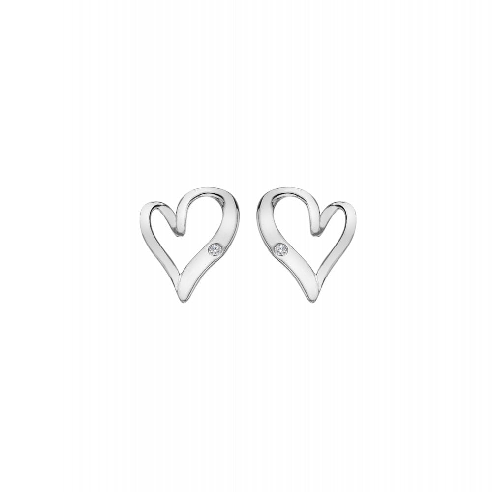 Bring a little love into your jewellery box with these elegant heart earrings featuring a tiny twist. Finished in 925 sterling silver and hand-set with a real diamond, these earrings measures 10mm x 9mm. Post and scroll fittings.