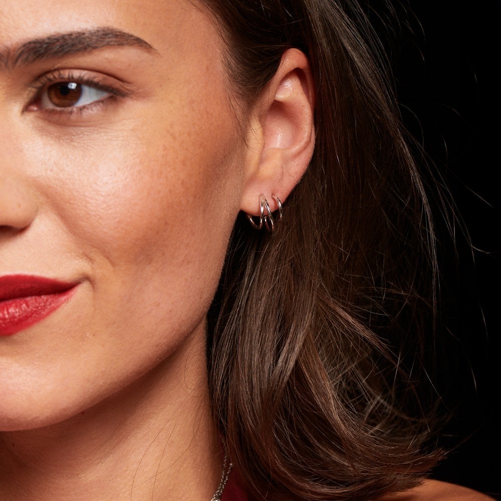 A contemporary twist to a classic hoop, we're in love with these gorgeous earrings. Taking you from your 9-5 to dinner with friends, add them to your basket now! Crafted in sterling silver and hand-set with a real diamond, these earrings measure 15mm wide. Post and scroll fittings.