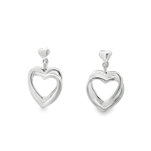 Silver Double Heart Drop Earrings