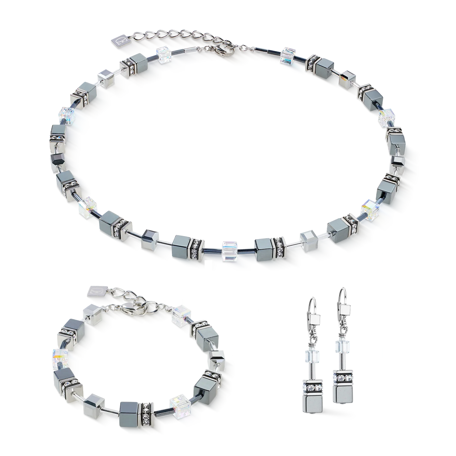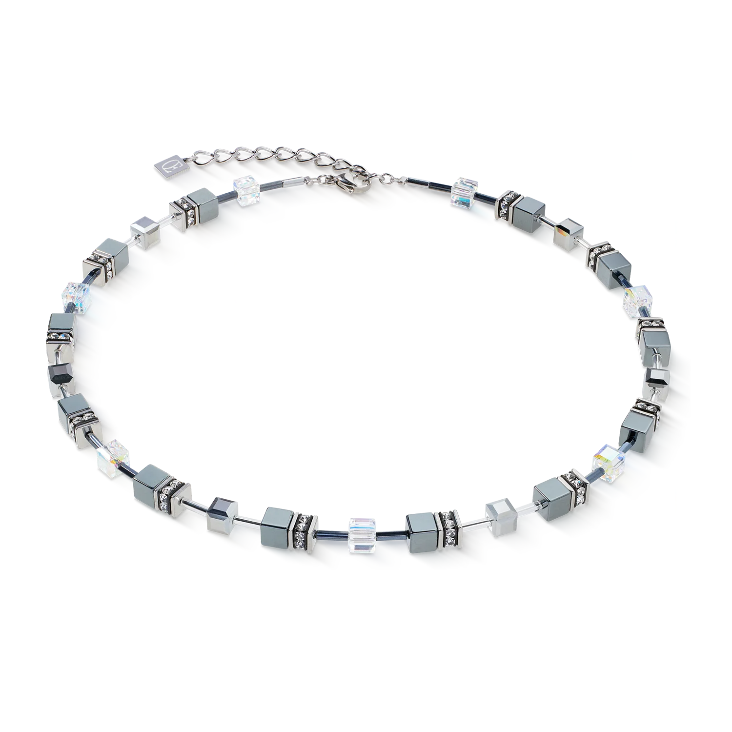 A COEUR DE LION classic in its purist form: The GeoCUBE® platinum colour necklace combines cool haematite with shimmering crystals and highly polished stainless steel to create a modern statement in sophisticated shades of grey and platinum. The geometric clarity and harmonious colour composition create a timeless elegance - perfect for business looks and festive occasions. Handmade in Germany for the highest quality and style.