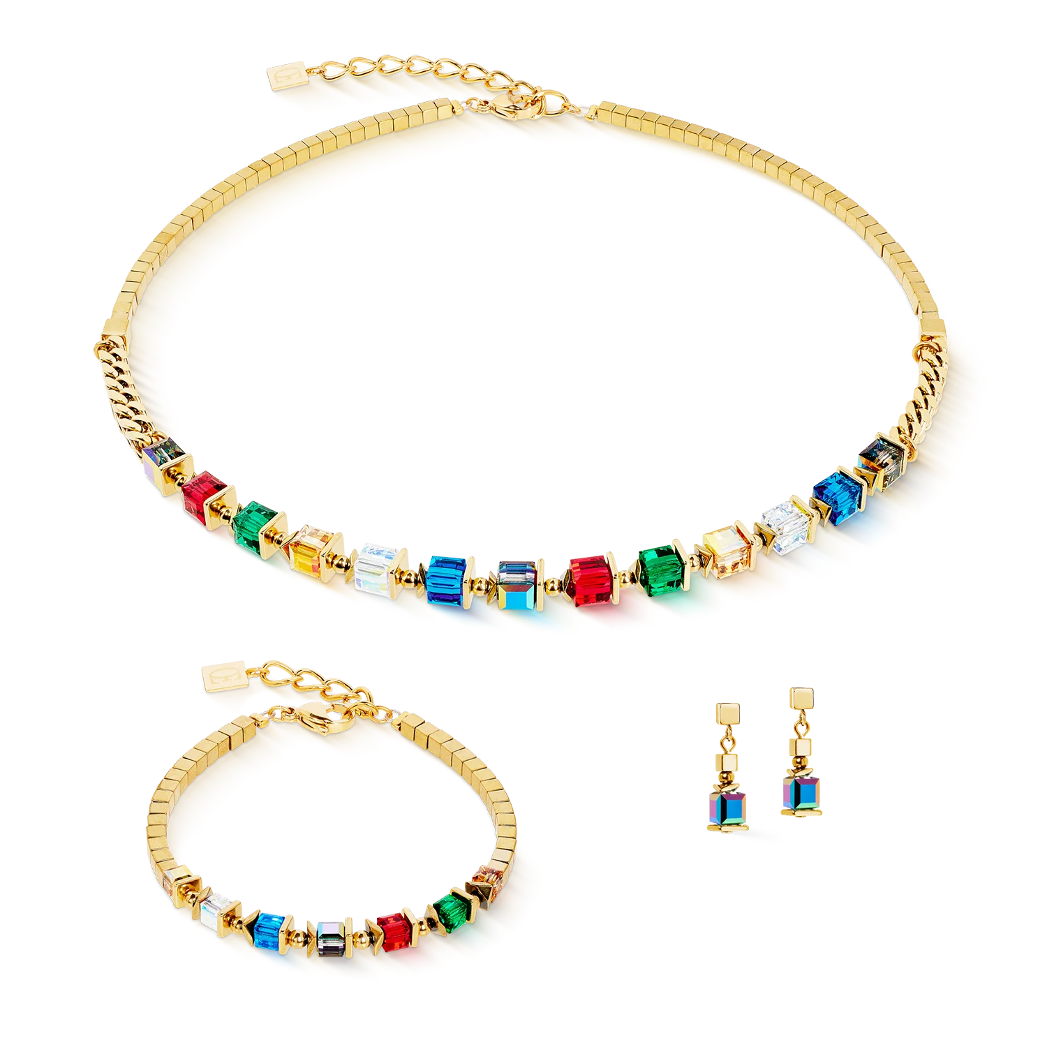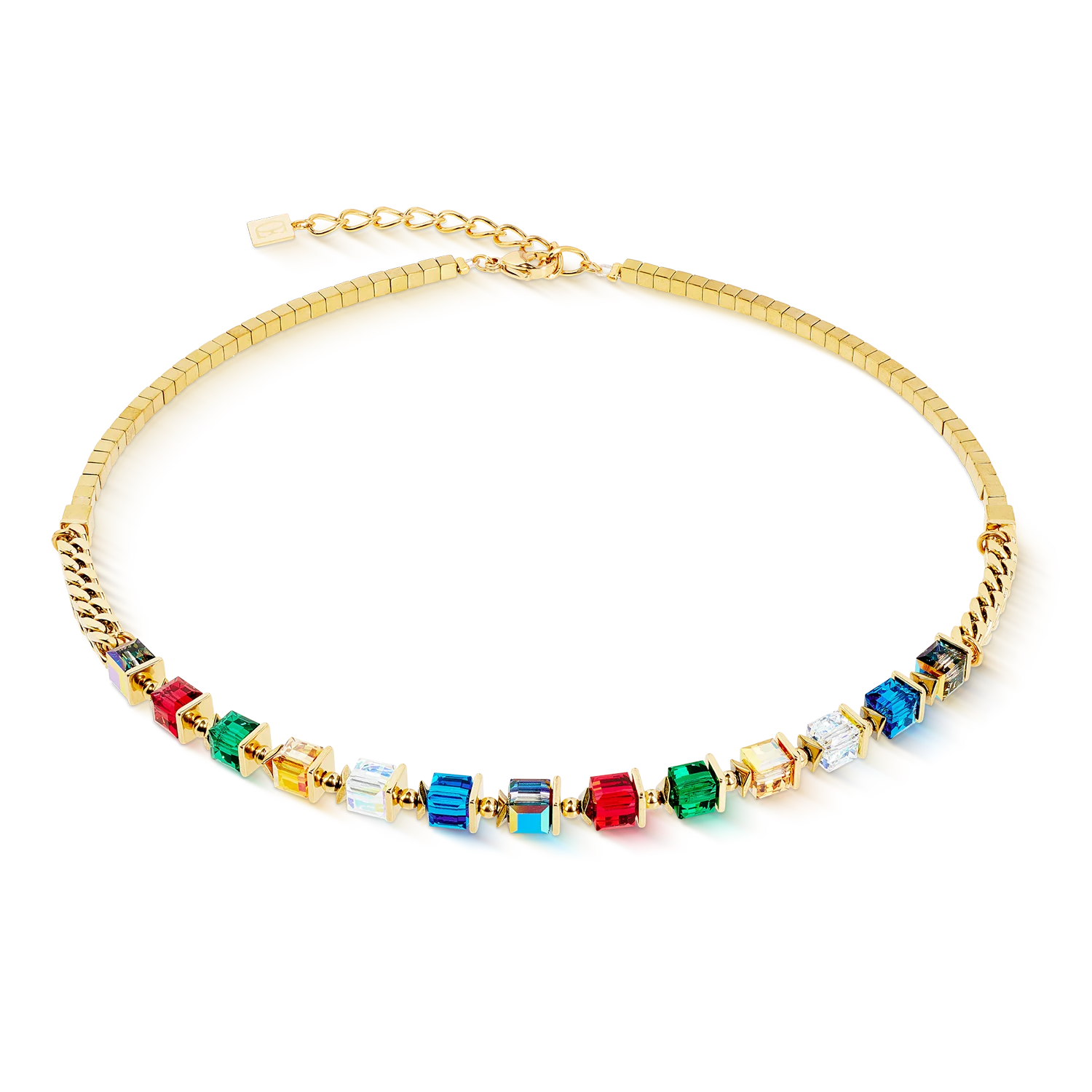 Colourful, sparkling, powerful: the Sparkling Cubes Fusion Chain necklace in gold multicolour is a clear statement - inspired by Sparkling Moments. Radiant Swarovski® crystals in multicolour meet gold-plated stainless steel and hematite cubes with a titanium oxide finish. The striking chain structure lends the design a modern strength. A piece of jewellery with maximum colour character - perfect for expressive looks.