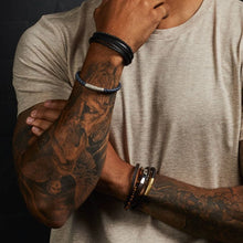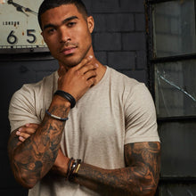• Load image into Gallery viewer, Reborn Multi Row Recycled Black Leather Bracelet With Lava Beads