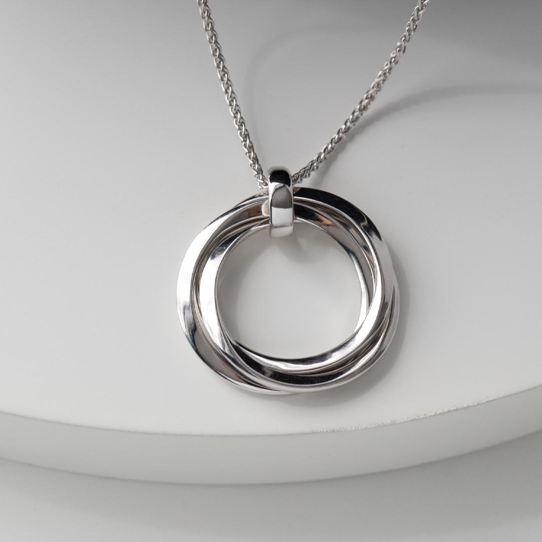 Each curvaceous silver swirl joins in contemporary harmony to form a beautiful pendant that makes a meaningful keepsake piece of jewellery, full of sentiment.