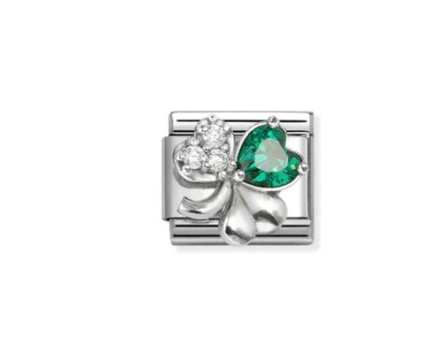 Composable Classic Two-Tone Gold And Silver Raised Clover With White CZ