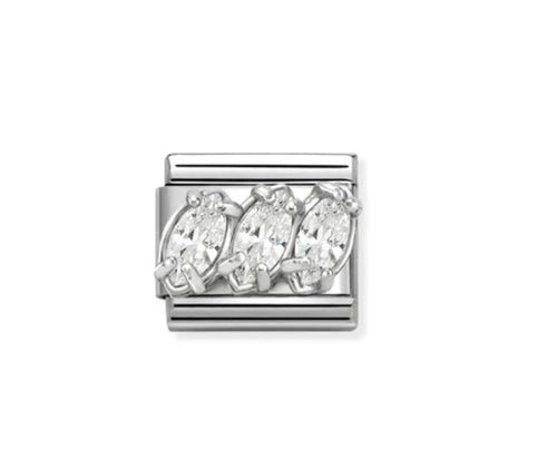 Composable Classic Link Two-Tone Gold, Silver And Enamel Myosotis White With White CZ
