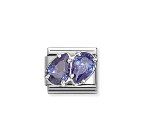 Composable Classic Link Two-Tone Gold, Silver And Enamel Myosotis Blue With White CZ