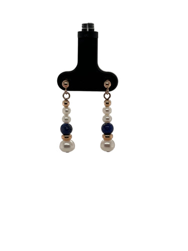 Freshwater Pearl And Lapis Bead Drop Earrings