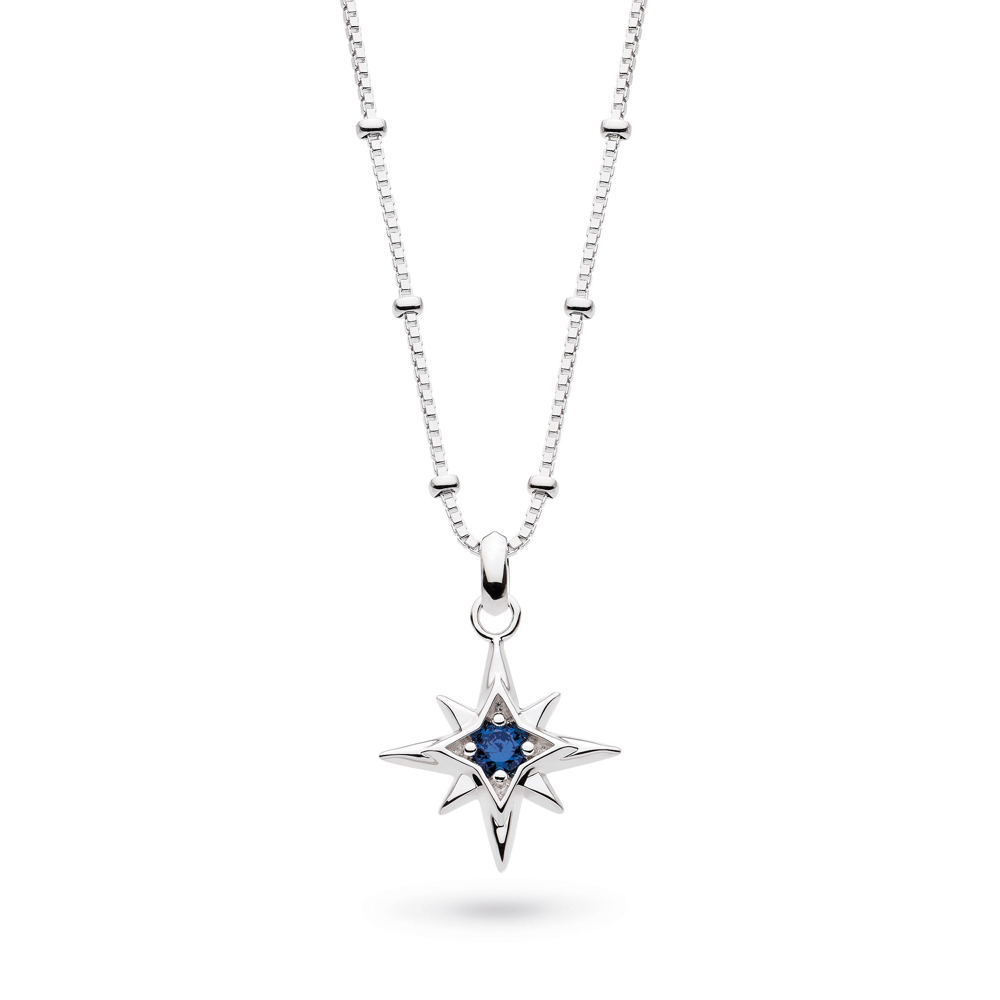 Part of Kit Heath's Céleste Aurora collection, this birthstone September necklace showcases a sterling silver 8-pointed star with a mini synthetic sapphire charm.