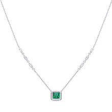 Sterling silver Diamonfire necklace set with cubic zirconia sections from which hangs a square faceted green emerald coloured cubic zirconia surrounded by pavé set clear cubic zirconia. On 18" chain with shortening rings at 16" and 17".