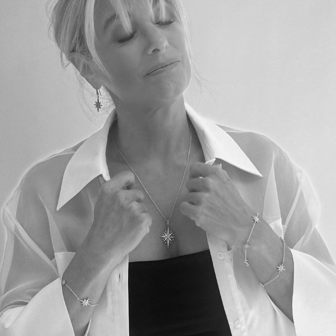 A first for Kit Heath's bracelet collection, their special winter 2025 edition North Star Pavé-set Cubic Zirconia Station Slider Bracelet will add radiant sparkle to your wrist this season. This delicate bracelet features three eight-pointed North Starburst radiating sparkle at every point and centre, connected along a fine chain. The adjustable slider clasp ensures the perfect fit. A symbol of guidance and timeless brilliance, this striking bracelet will make a thoughtful, lasting and sparkling gift.