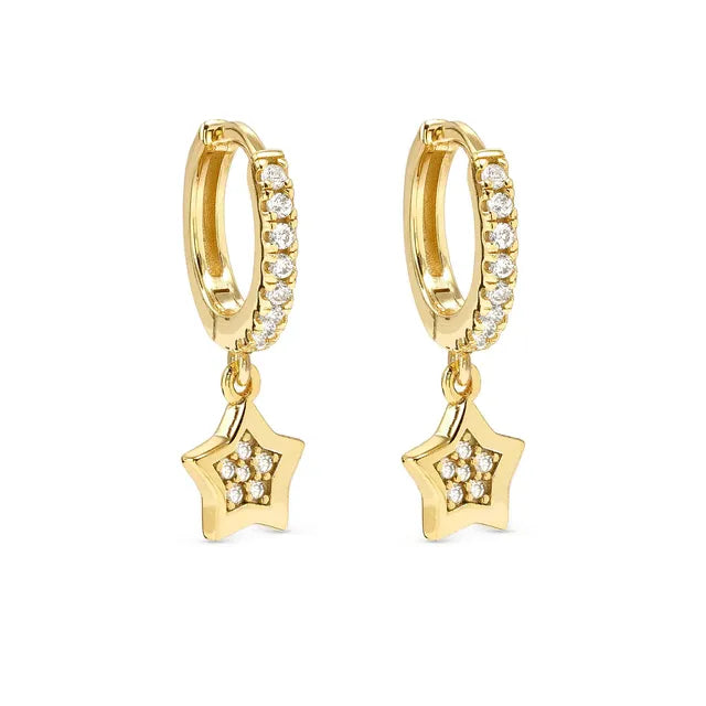 18ct yellow gold plated sterling silver hoop earrings set with cubic zirconia with a star pendant set with cubic zirconia.