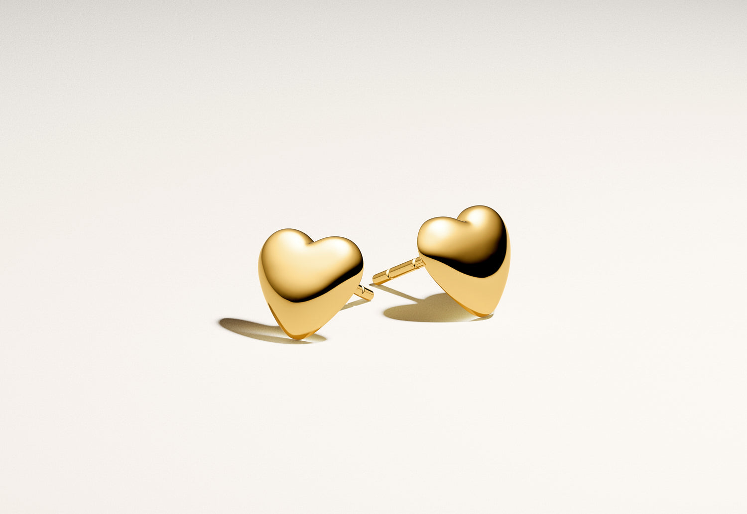 18ct yellow gold plated sterling silver earrings with heart design. On post and scroll fittings.