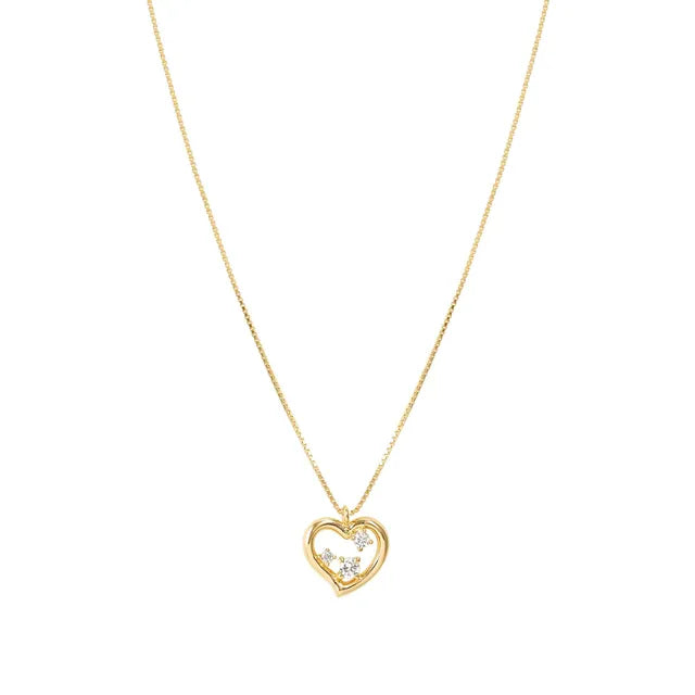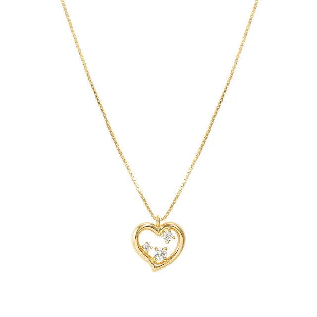 Sterling silver necklace with 18k gold plated finish, central heart with cubic zirconia.
