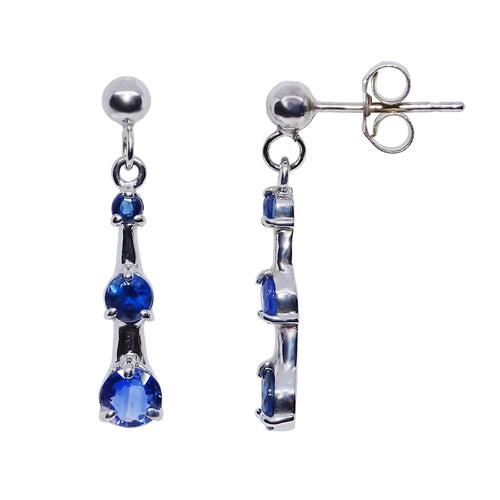 9ct White Gold Oval Sapphire And Diamond Drop Earrings