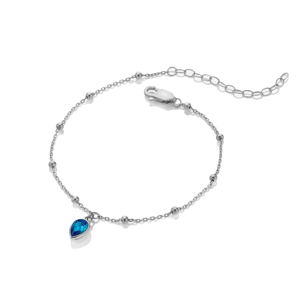 Silver Whisper "December" 925 sterling silver bracelet with blue topaz coloured cubic zirconia set charm. This bracelet measures 16cm with a 4cm extender.